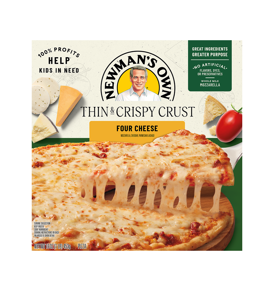 La pizza Newman’s Own Thin & Crispy Four Cheese es una combinación de mozzarella, queso cheddar, parmesano y asiago para chuparse los dedos. Esta pizza le encantará.
