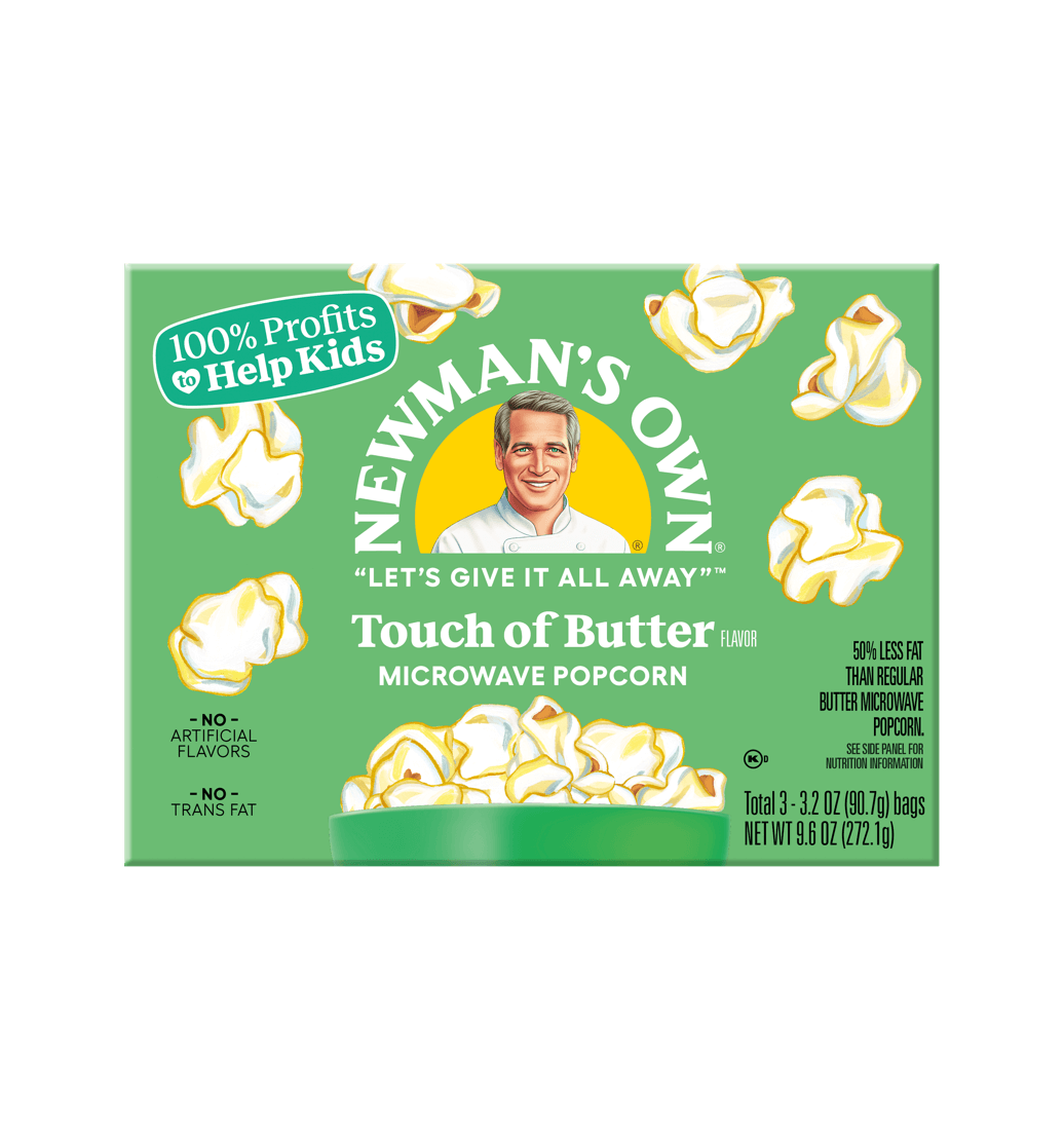 For just a hint of buttery goodness, try Newman’s Own Touch of Butter Microwave Popcorn bags.